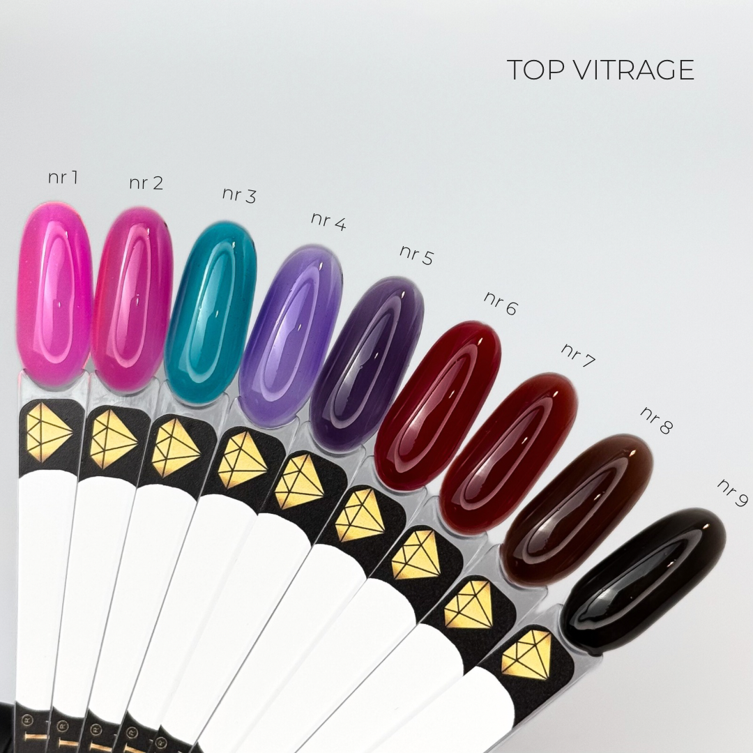 Vitrage Top is a universal stained-glass top coat without a sticky layer that gives your manicure exceptional depth and shine. It can be applied over any coating – both colored and transparent.