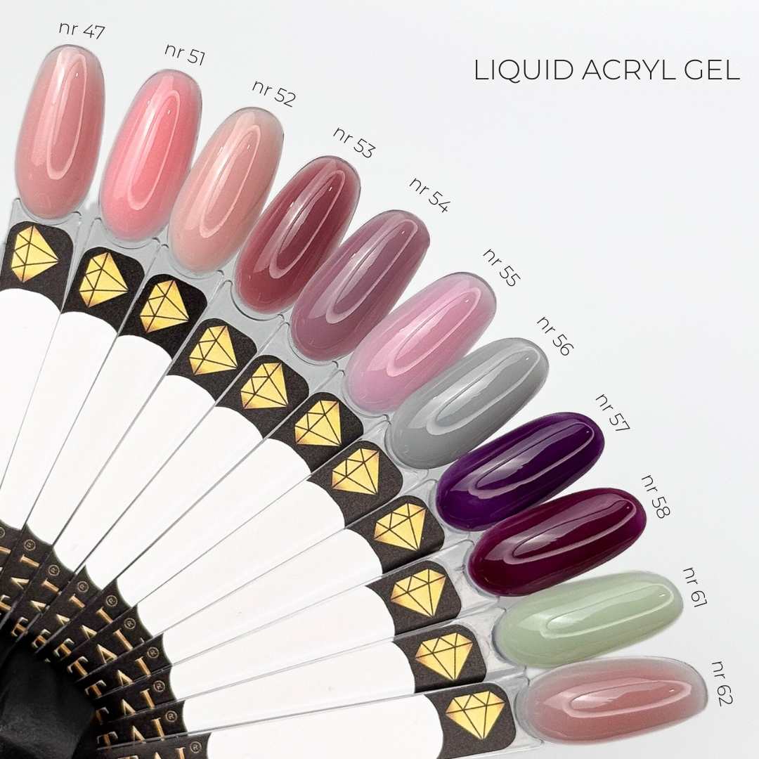 - Przed nałożeniem Liquid Acryl Gel należy nałożyć podkład z przezroczystej elastycznej bazy dla lepszej adhezji. Rekomendujemy w szczególności naszą Base Scotch lub Base Rubber.