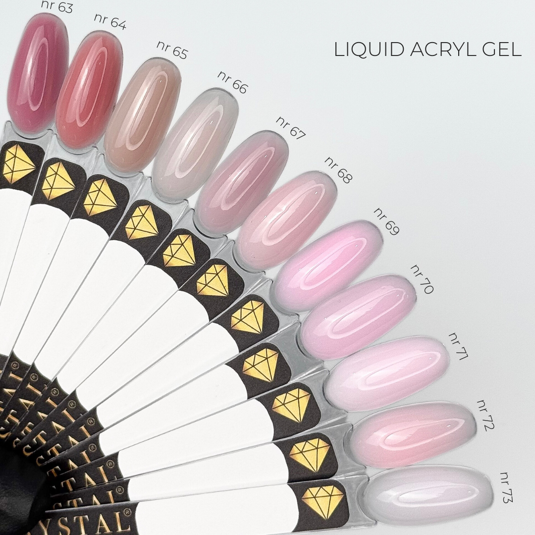 Liquid Acryl Gel Crystal Professional - Płynny żel akrylowy może być stosowany do wszystkich typów paznokci. Nadaje manicure jeszcze większą wytrzymałość i długą trwałość. Ze względu na swoją konsystencję (podobną do gęstej bazy) materiał jest łatwy w aplikacji i rozprowadzaniu. Cechy: