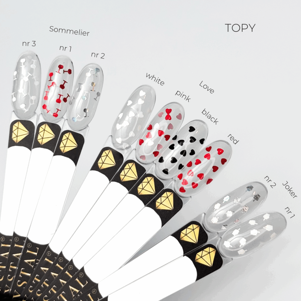 Top Joker to top bez warstwy dyspersyjnej, z połyskującymi drobinkami, które pięknie prezentują się zarówno na jasnych, jak i ciemnych oraz nude odcieniach.
