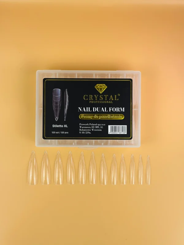 Профессиональные верхние формы (Dual Form) бренда Crystal Professional предназначены для быстрого и точного наращивания ногтей с использованием геля, акригеля и полигеля. Форма Stiletto XL позволяет создать очень длинный, тонкий и эффектный дизайн ногтей с характерным острым кончиком.