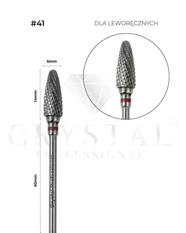 Frez węglikowy „Kukurydza” Crystal Professional №41(czerwone nacięcie 6,0 mm) для лівші - Crystal